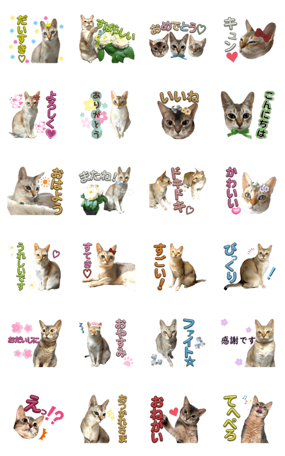 シンガプーラのさとしくん&すみれちゃん ♥️アビシニアンのりんちゃんの仲良し3にゃんスタンプ2