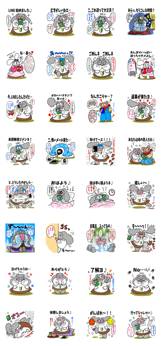 うさばあちゃんがLINEに初挑戦! 失敗しながらも孫の助けで楽しんでいます。LINE初心者さんが失敗しちゃったり、詫びたり、助けを求めたりする時にも使えるスタンプです!
