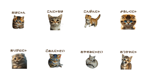 Stickers of cat (Scottish fold) saying greetings in Japanese language.