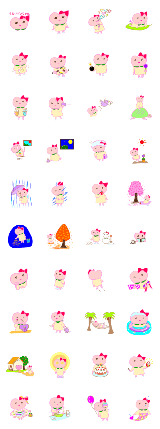 かわいい桃の女の子、「ももリボンちゃん」のスタンプで可愛くメッセージを送ろう♪♪