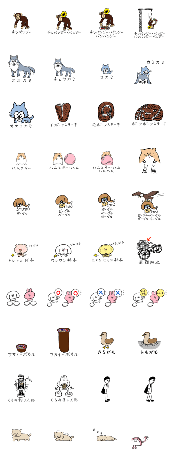| スタンプ説明 | SNSでバズった動物の四段オチイラストをスタンプにしました。今回はナントおまけイラストも特別収録。 |