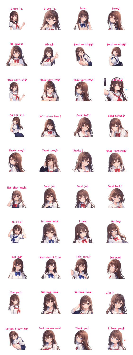 Express greetings and gratitude with cute girl illustrations. Perfect for everyday moments. Add a touch of charm to your daily conversations!
