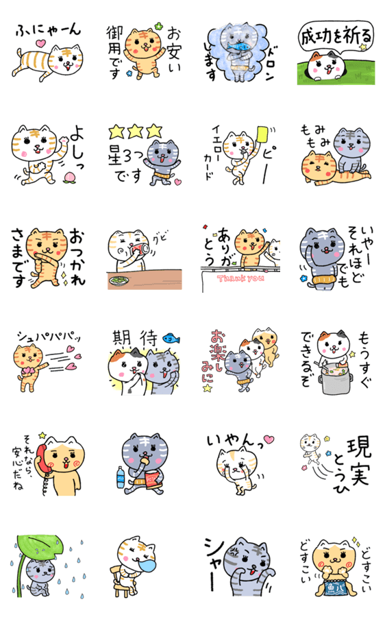 時には激しく、時には優しく動くよ。トラ猫/茶トラ/サバトラ/三毛猫/腹巻き/あいさつ/マッサージ/イエローカード/ハート/現実逃避/雨やどり/三ツ星/ポップアップ