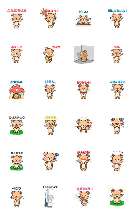 表情豊かなハムスターのスタンプです!