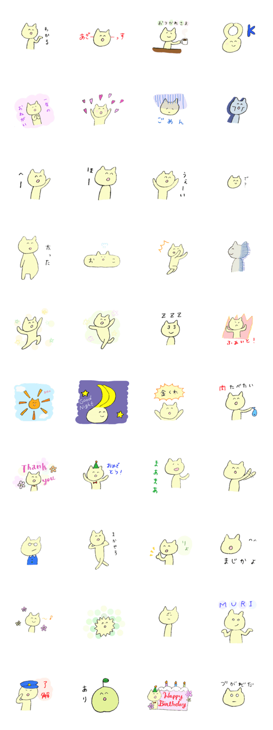 大体ねこ、たまにうさぎの割と使えるスタンプ。