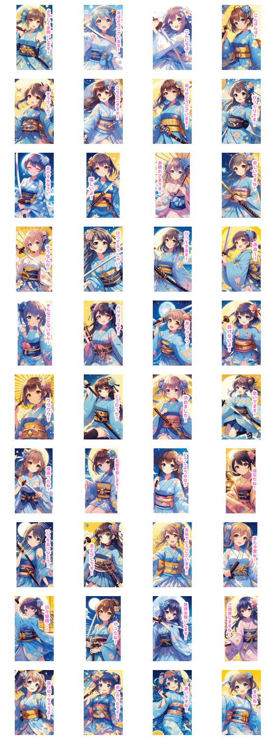 刀の女の子BIGスタンプ(水色・夜) -LINEスタンプマニア