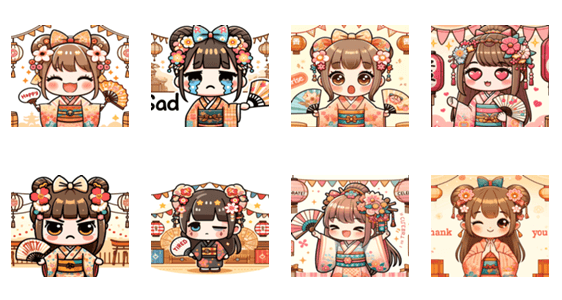 夏祭りを楽しむかわいいキャラクターが登場!様々な表情でトークを盛り上げます。