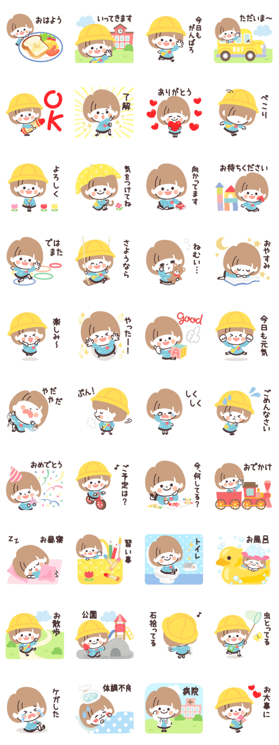 甘さ控えめ大人女子♪マッシュちゃん×園児。今を伝える連絡スタンプ。毎日のあいさつにずっと使える.思いやり.ママ友.挨拶.家族.保育園.幼稚園.孫.子育て.育児.予定