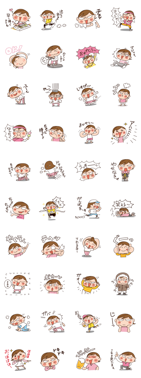 マラソン大好き主婦のスタンプです。多忙な日々の中の、ほんの一コマを面白おかしく描きました。