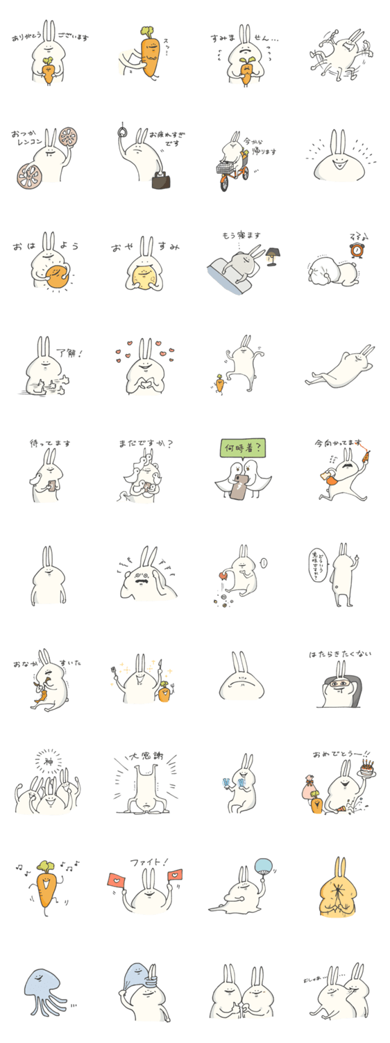 ゆる〜いうさぎのスタンプ第三弾です。にんじんは友達