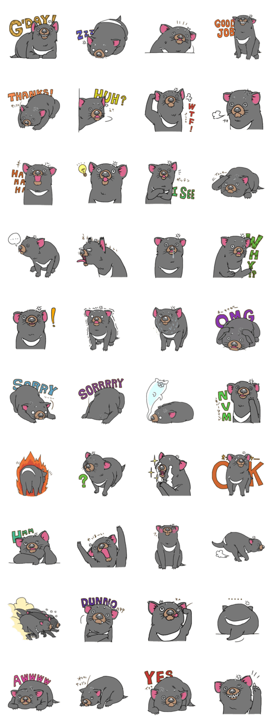 | スタンプ説明 | タスマニアデビルです。注 怒りやすいのでご使用にはお気をつけ下さい。 |