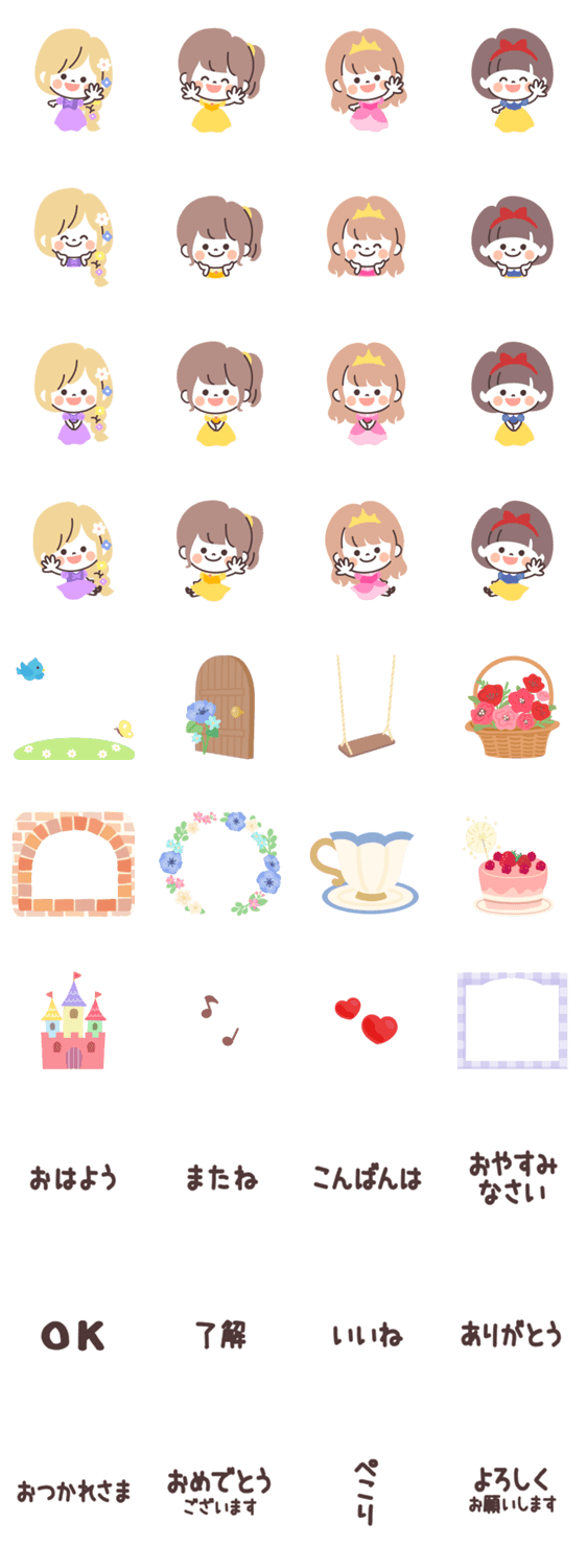 甘さ控えめ大人女子のお姫さまVer♡組合せアレンジで楽しもう♪年中ずっと使える毎日の挨拶.日常.ママ友.ゆるふわ.ラプンツェル.ベル.美女と野獣.眠り姫.白雪姫