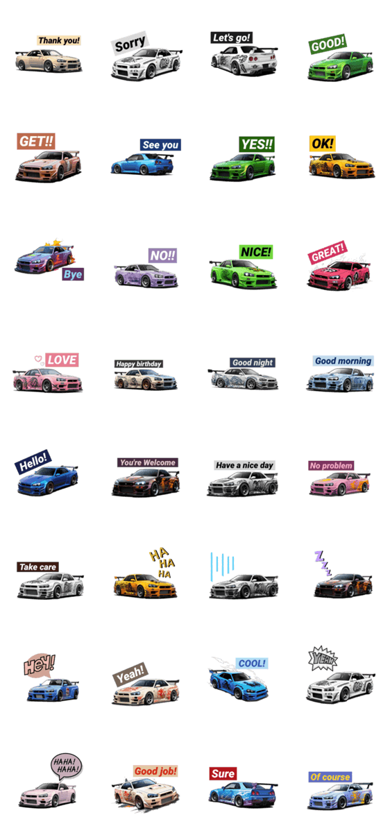 かっこいいスポーツカーとトライバルデザインのイラストが特徴のLINEスタンプ。スピード感あふれるスタイルを楽しもう。車好きやデザイン好きにおすすめ!
