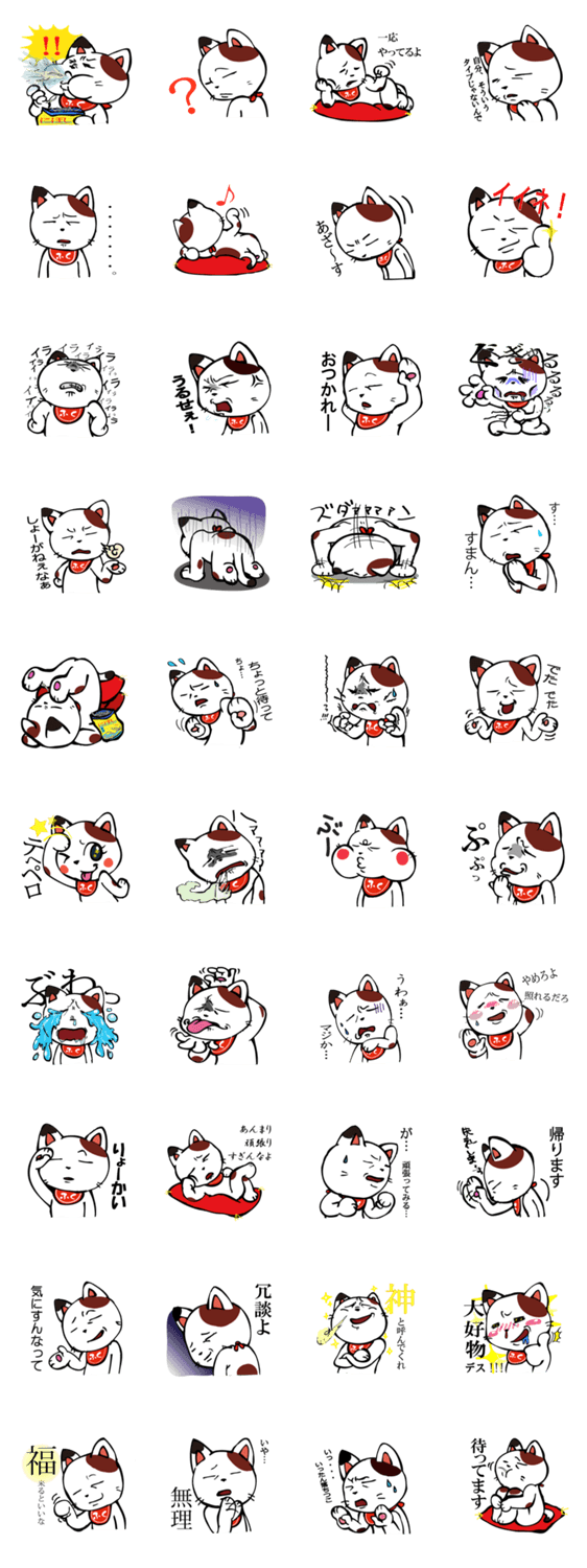 いつも何かを招いていないようで招いている。表情豊か!でもあまりやる気はない。このスタンプを使えばもしかしたらあなたに福を招いてくれるかも・・・