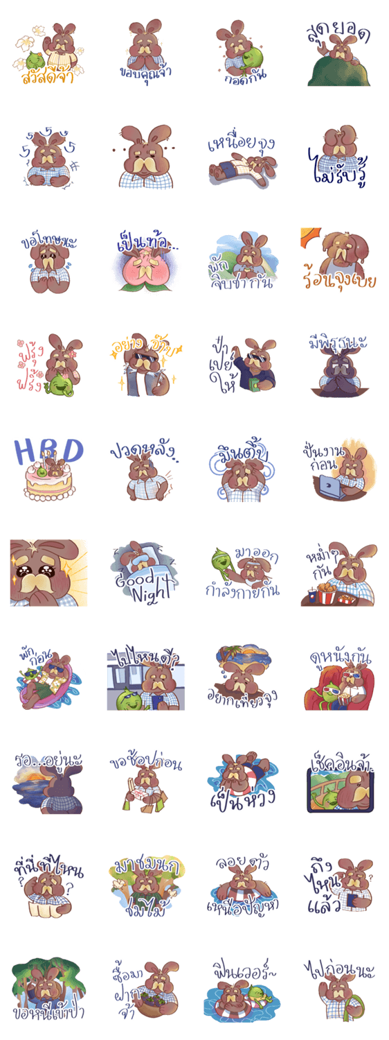 | スタンプ説明 | Lung-Tai, the almost-retired uncle rabbit who likes to go on travel regularly. Ready to go for travel around Thailand with Aunjai right now! |