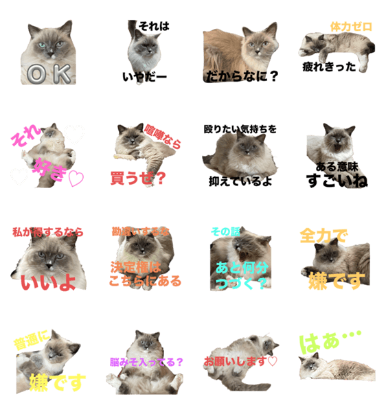 白ネコのあいうえお・・・ってるスタンプ