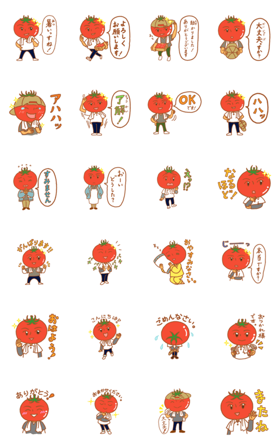 さわやか(?)イケメン(?)のトマトさんスタンプです。農家さんや、トマト好きなアナタに!I love tomato!