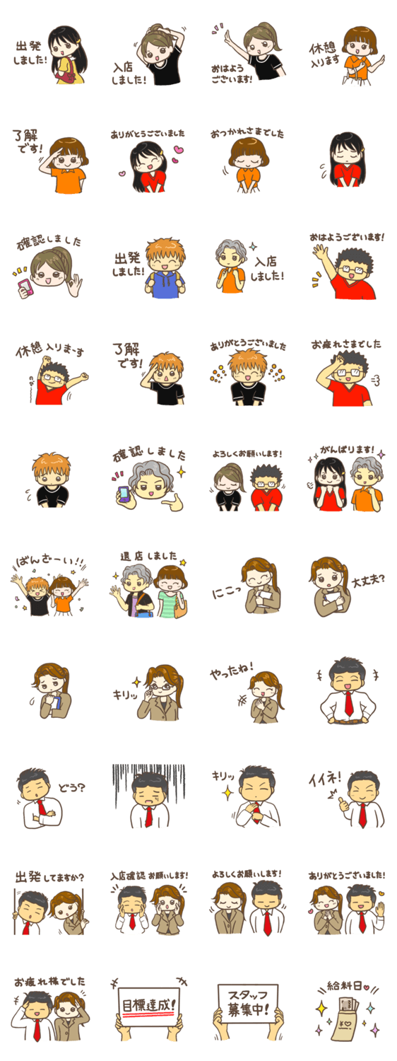 | スタンプ説明 | 人材派遣会社バックスグループがお届けする、はたらくみんなのお仕事コミュニケーションスタンプ第一弾!今日も一日がんばろう&おつかれさまです♪ |