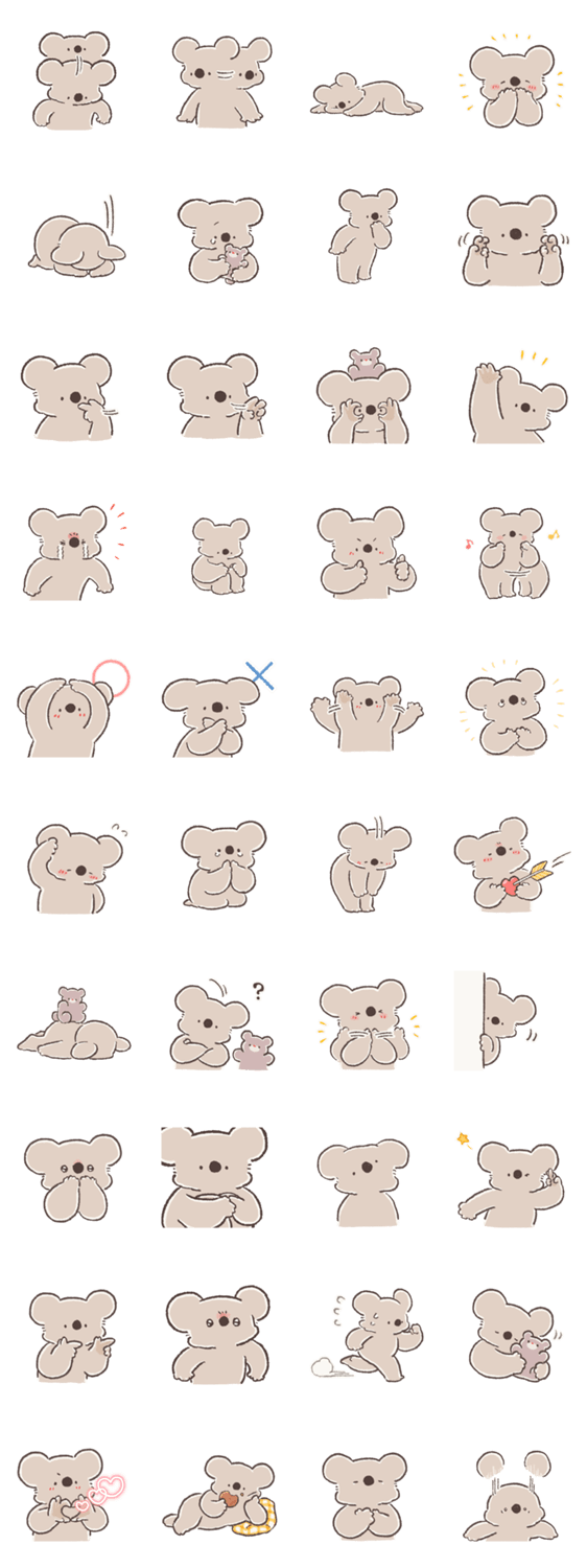 「コアラ絵日記」の公式スタンプです。言葉にしきれない気持ちの表現をコアラがお手伝いします。