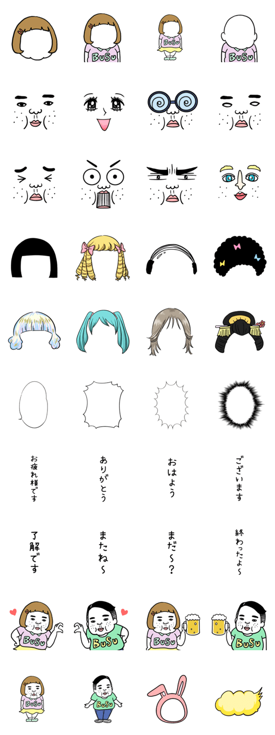 LINEの新機能「スタンプアレンジ機能」に使いやすいスタンプです。組み合わせ自由で吹き出しやウィッグやかつら、コスプレも楽しめる!別のスタンプと混合もOK!