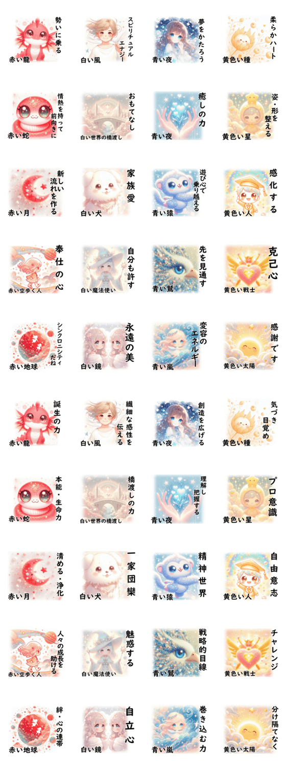 マヤ暦の紋章一言ワード40個セット② ほんわかバージョン♪ (紋章日本語表記)