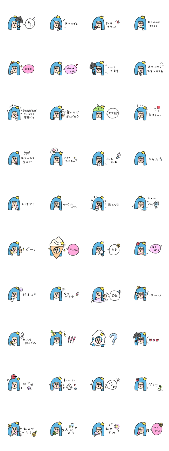 面白くてかわいいひめざべすの夏に使えるスタンプです。 面白い/かわいい/シュール/ゆるい/シンプル/姫/文字付き/挨拶/