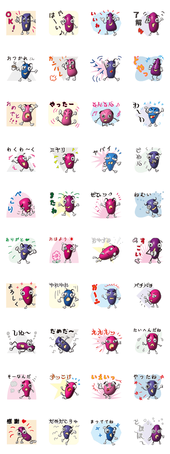 | スタンプ説明 | 北海道産のハスカップの実を楽しいキャラクターにしました |
