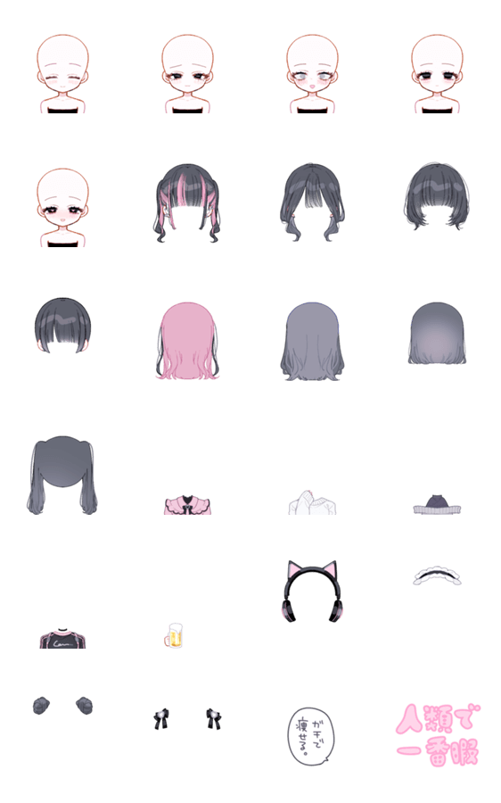 スタンプを組み合わせて自分好みの子が作れるスタンプです