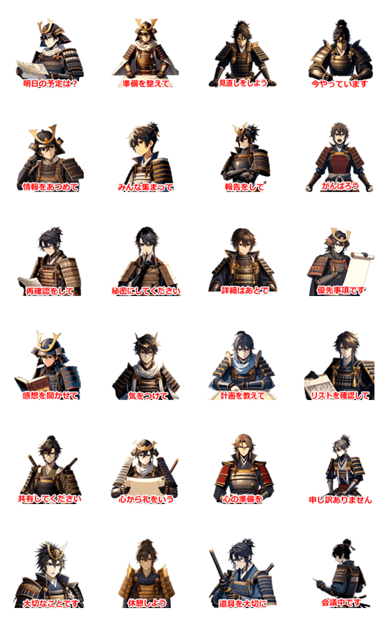| スタンプ説明 | 武将さんが使いそうな言葉をつかったラインスタンプです。 |