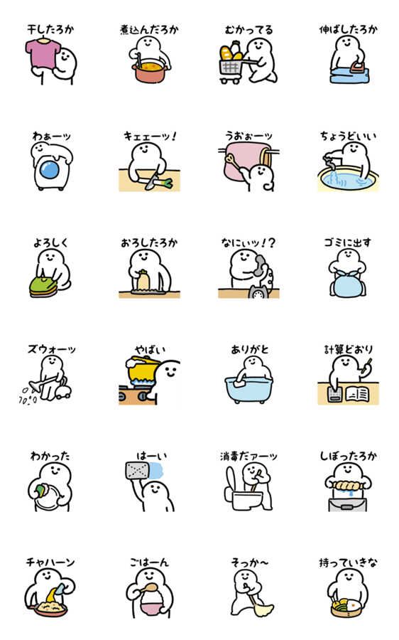 家事をする人のアニメーション絵文字です。主婦/主夫/面白い/楽しい/笑顔/シュール/手書き/ゆるい/癒し/ゆるかわ/小さいスタンプ/ミニスタンプ/シンプル/使いやすい