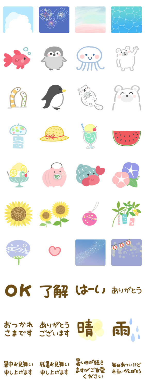 アレンジ機能で楽しめる夏スタンプです♪いろいろ組み合わせてオリジナルの暑中お見舞いやスタンプが作れます。