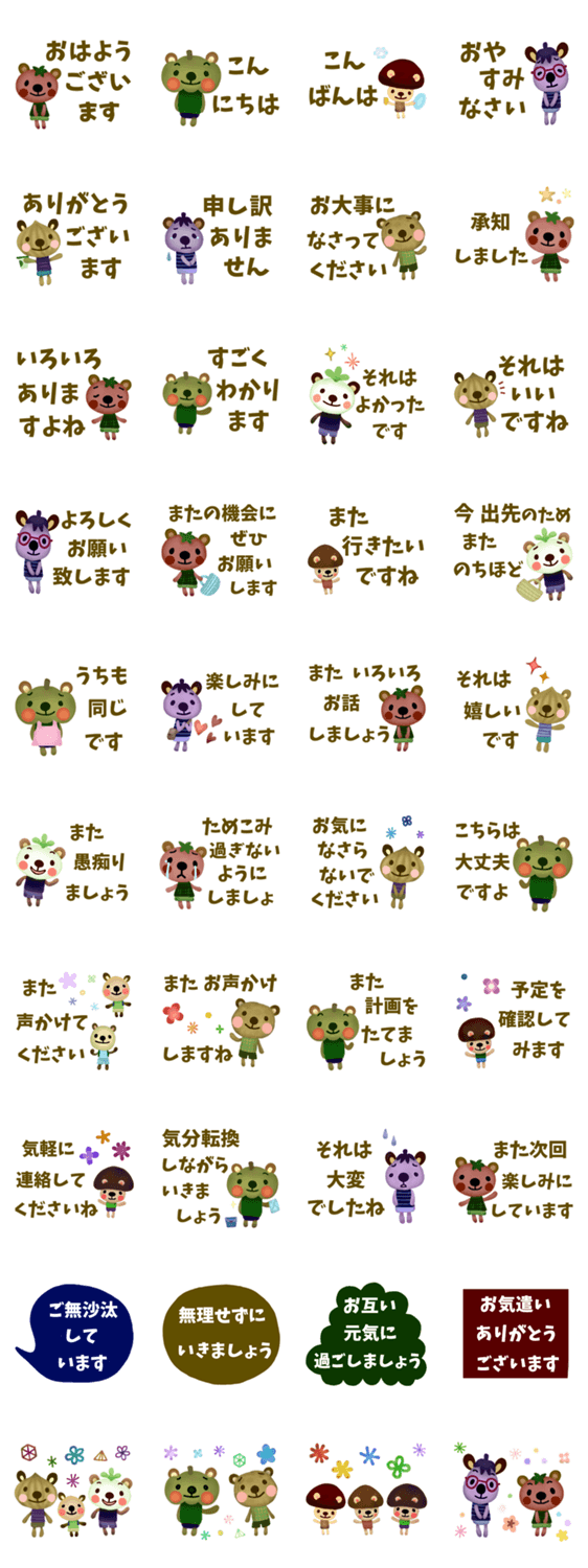 | スタンプ説明 | でか文字で見やすいスタンプです。 日常会話/丁寧/ママ友/子育て/愚痴/ストレス解消/組み合わせて使える/アレンジ可能/役員/職場/動物/ 野菜/グルメ |