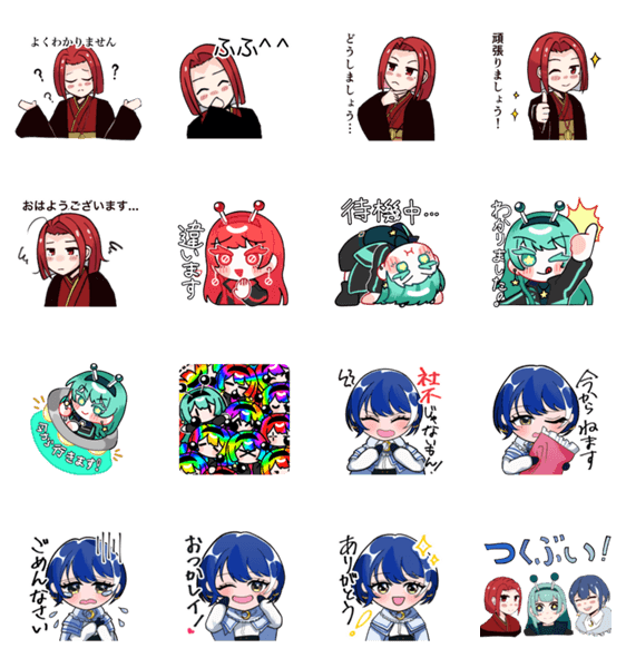 筑波大学Vtuberサークルのつくぶい!からLINEスタンプが登場! 1期生の杏エイリ、融月レイ、明灯のセットです。