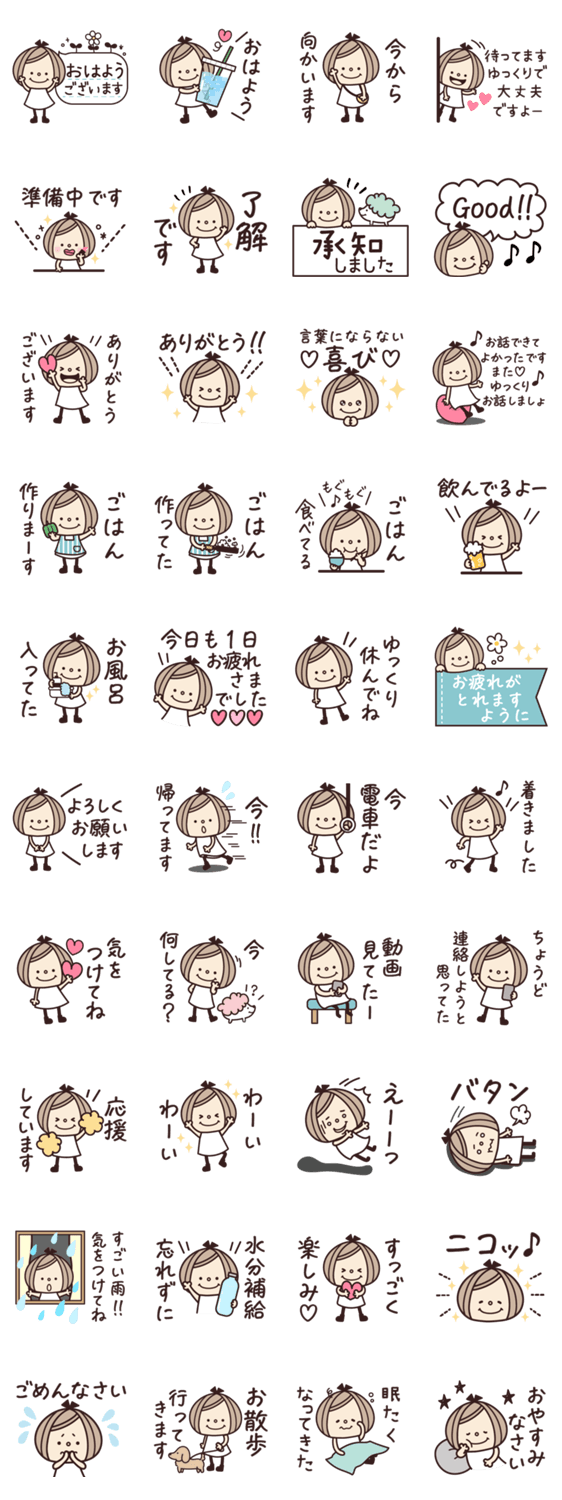 よく使う言葉と今何しているか伝えるスタンプ♪女の子