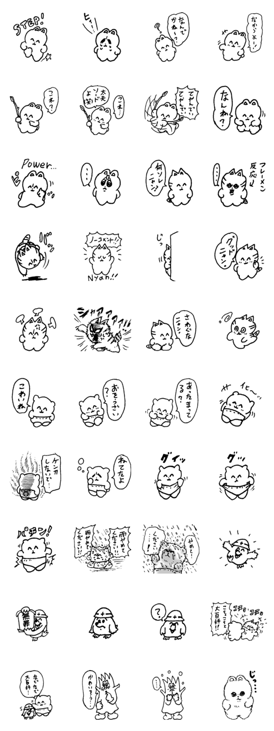 白ネコのあいうえお・・・ってるスタンプ