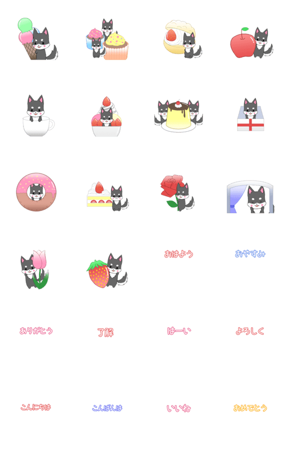 小さいハスキーたちのアレンジアニメスタンプ。ブラック/黒/カワイイ/可愛い/キュート/犬/イヌ/もふもふ/モフモフ/挨拶/日常会話/気持ち/感情/シンプル