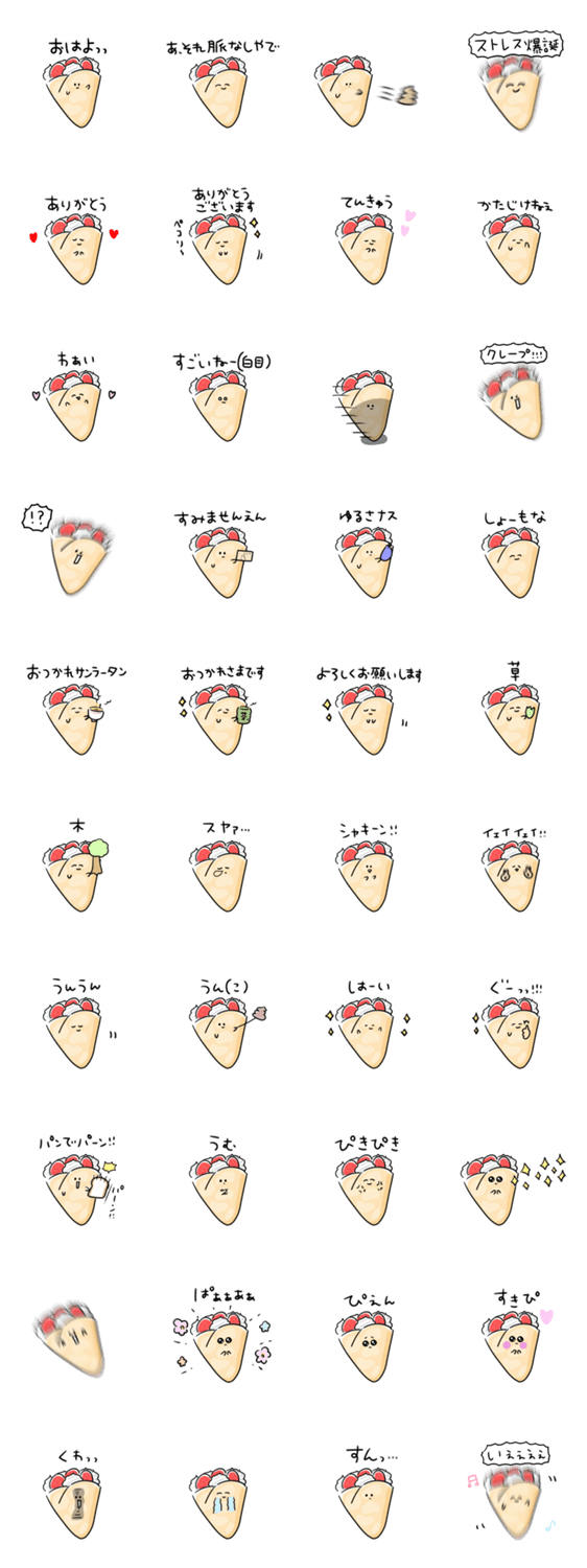 くれーぷのシンプルで使いやすいスタンプです。[ゆるかわ シュール 可愛い 食べ物 敬語 ダジャレ 毒舌]