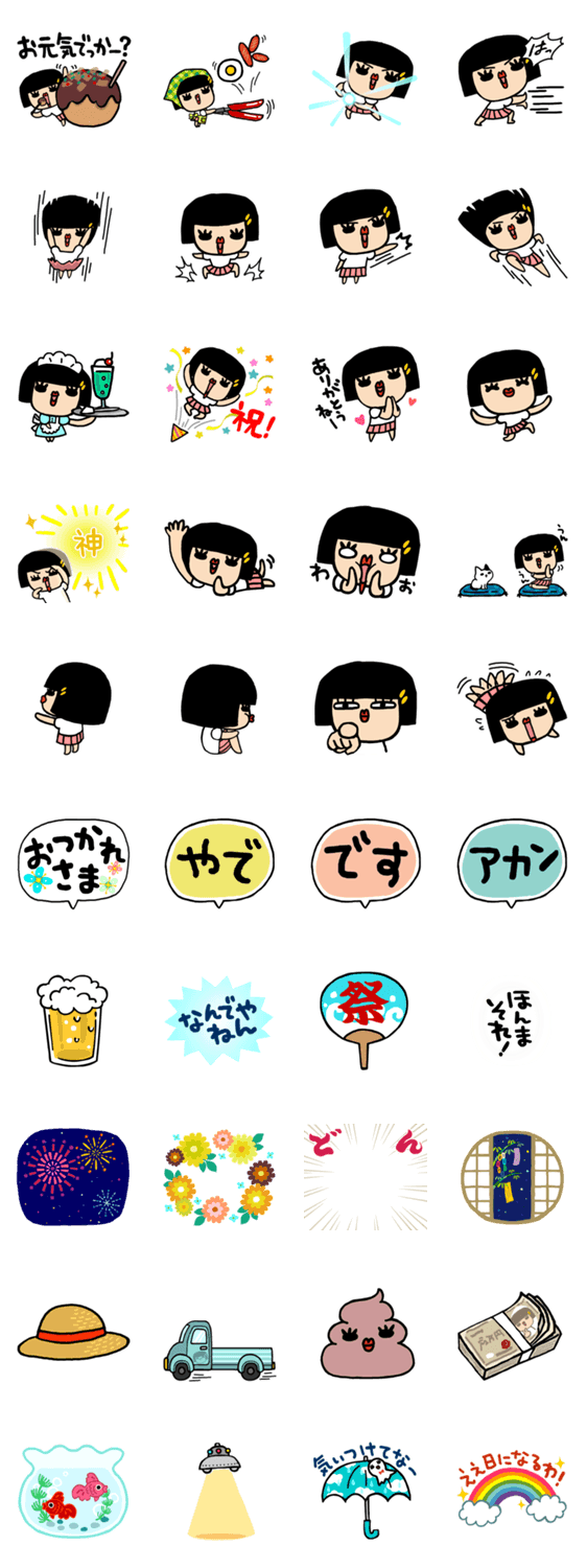 そのままでも組み合わせても!お手持ちのスタンプで楽しくアレンジして使ってください。夏/七夕/花火/祭/日常/おかっぱ/方言/関西弁/大阪弁/LINEスタンプ新機能