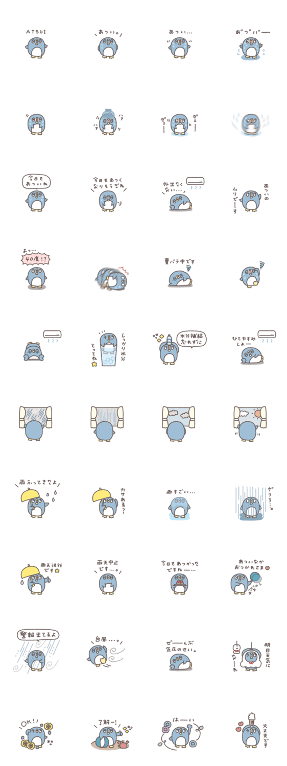 一つあると便利なちびっこペンギンのスタンプです! ペンギン/無気力/夏/梅雨