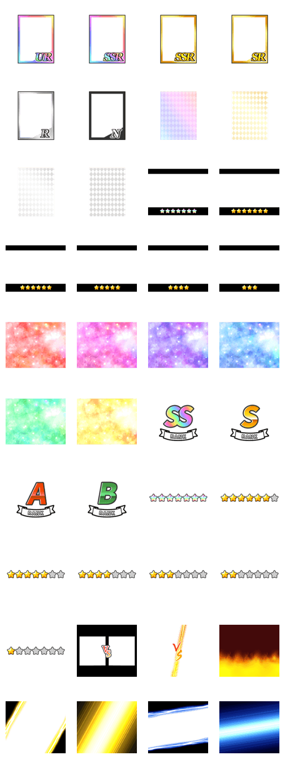 お気に入りのスタンプをソシャゲのカードやカットイン、格ゲーの対戦画面風にアレンジできる激アツな素材セット☆いろいろ組み合わせて遊んでみてね! #スタンプアレンジ