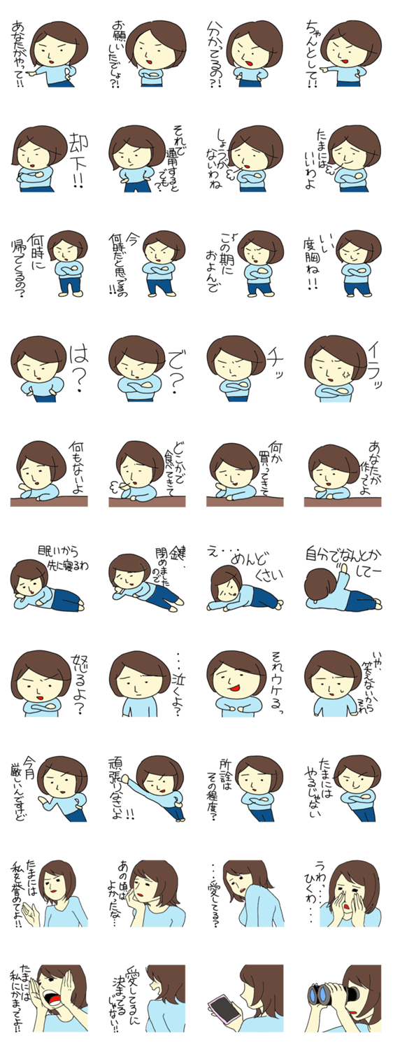 おによめさんのスタンプです。キツいことを言いながら、カワイイ一面も。