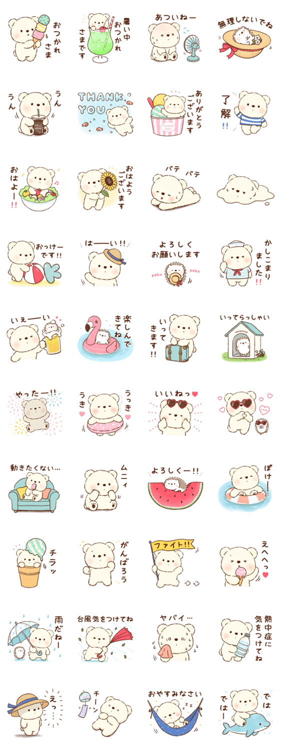 もこもこしろくまさん時々ハリネズミのスタンプです!暑い夏に♪