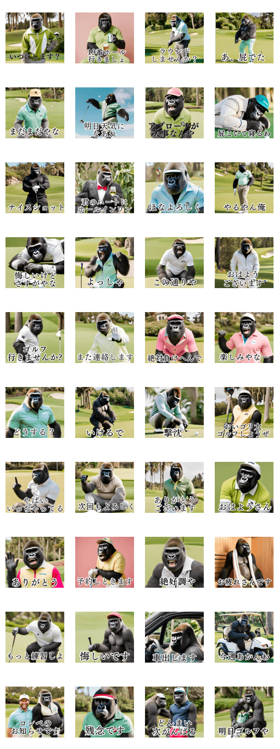 ゴルフ好き/コンペ/接待/挨拶/関西弁/打ちっぱなし/スポーツ/接客/プロゴルファー/おもしろ/ギャグ/ネタ/飲み会/飲み屋/営業/パター/アマチュア/ゴリラ/猿/類人猿/趣味
