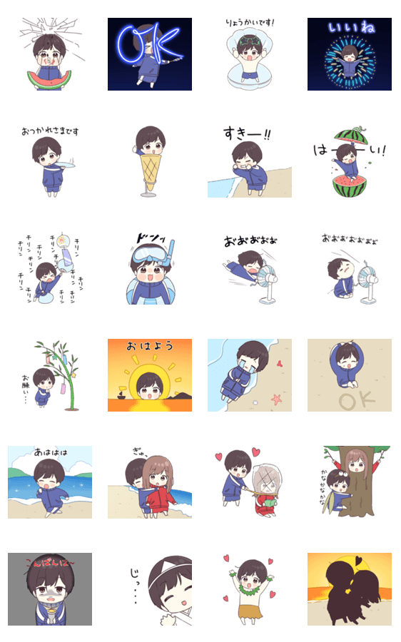夏だ!何する?海も花火も、いっしょに行きたい!大切な人と暑い夏をドラマチックに過ごすスタンプです☆