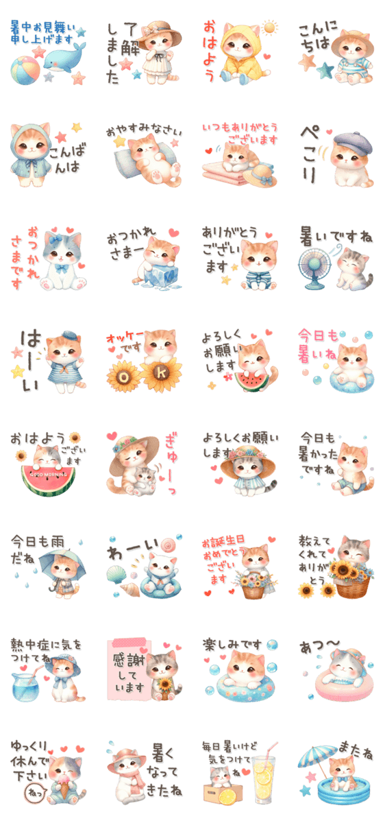 猫がいっぱい♡夏のあいさつ -LINEスタンプマニア