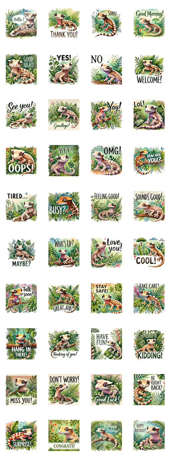 リアルでかわいいクレステッドゲッコーのスタンプで、チャットに魅力をプラス。爬虫類好きやユニークなスタンプを楽しみたい方に最適です!