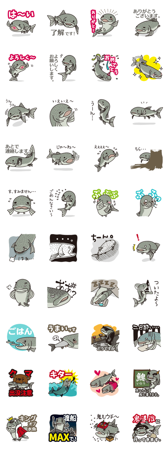 | スタンプ説明 | 幻の魚イトウさん。北海道朱鞠内湖周辺に生息する野生のイトウさんがスタンプになりました!シュマリイトウさんのスタンプで日常をちょっと楽しく♪ |