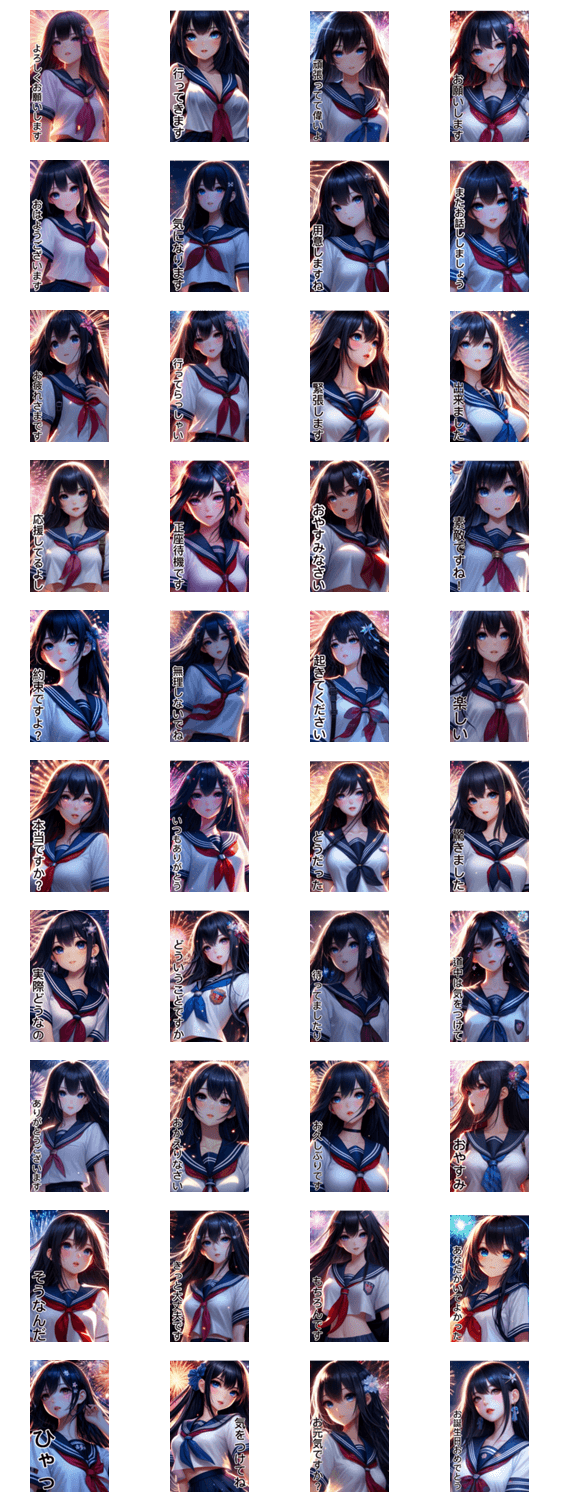 | スタンプ説明 | アニメ、甘い、可愛い、かっこいい、写真、美女、女の子、唯美、制服、日常用語 ※このスタンプはトークルームで大きく表示されるBIGスタンプです。 |