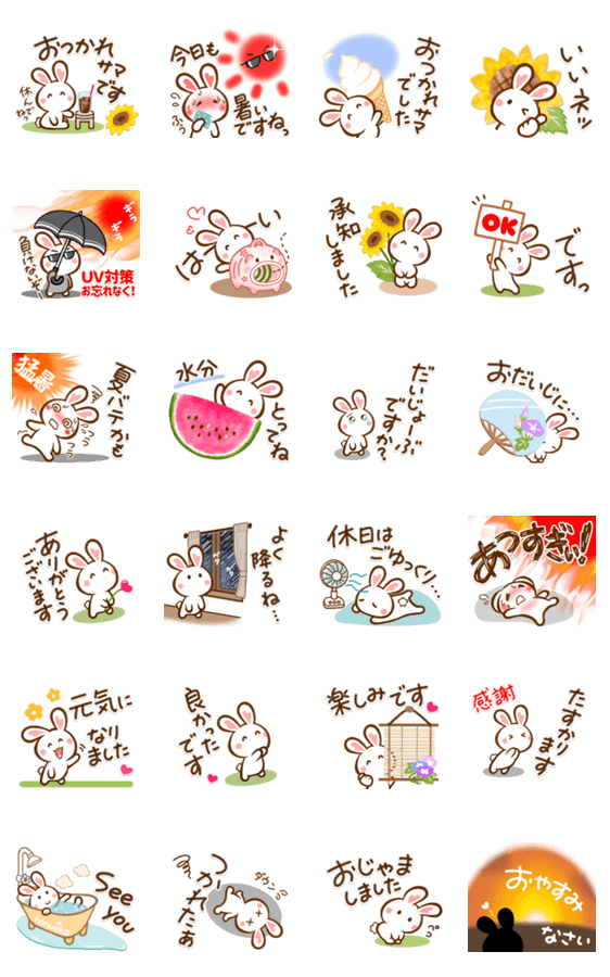 猛暑にも使ってね❣ハート耳のうさぎさん -LINEスタンプマニア