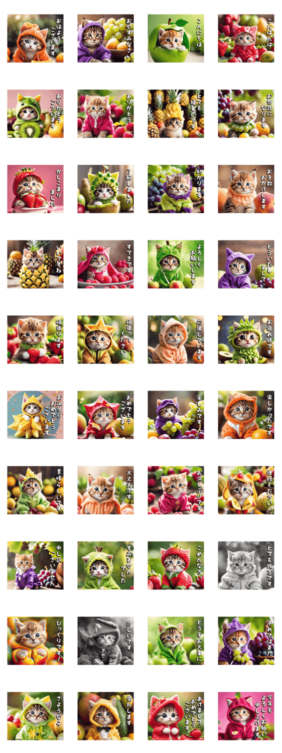 敬語でご挨拶 フルーツ着ぐるみこねこ. #02 -LINEスタンプマニア